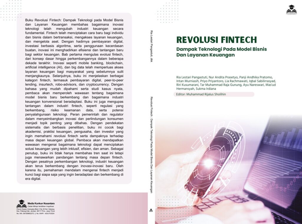 Buku Revolusi Fintech: Dampak Teknologi pada Model Bisnis dan Layanan Keuangan membahas bagaimana inovasi teknologi telah mengubah industri keuangan secara fundamental. Fintech telah menciptakan cara baru bagi individu dan bisnis dalam bertransaksi, mengakses layanan keuangan, dan mengelola aset. Dengan hadirnya pembayaran digital, investasi berbasis algoritma, serta penggunaan kecerdasan buatan, inovasi ini menghadirkan efisiensi dan tantangan baru bagi sektor keuangan.