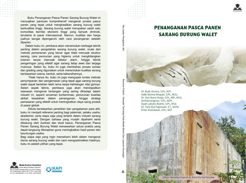 Buku Penanganan Pasca Panen Sarang Burung Walet ini menyajikan panduan komprehensif mengenai proses pasca panen yang tepat untuk menghasilkan sarang burung walet berkualitas tinggi. Sarang burung walet merupakan salah satu komoditas bernilai ekonomi tinggi yang banyak diminati, terutama di pasar internasional. Namun, kualitas dan harga jualnya sangat dipengaruhi oleh cara penanganan setelah dipanen.