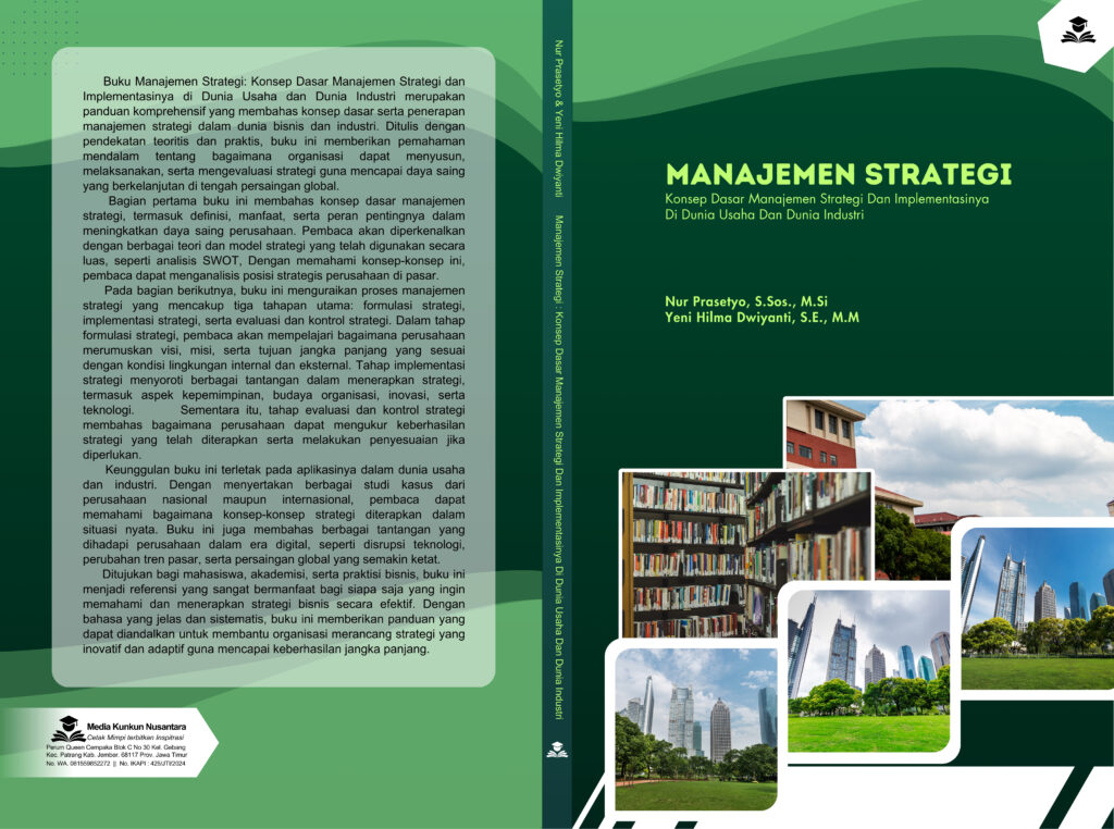 Buku Manajemen Strategi: Konsep Dasar Manajemen Strategi dan Implementasinya di Dunia Usaha dan Dunia Industri merupakan panduan komprehensif yang membahas konsep dasar serta penerapan manajemen strategi dalam dunia bisnis dan industri. Ditulis dengan pendekatan teoritis dan praktis, buku ini memberikan pemahaman mendalam tentang bagaimana organisasi dapat menyusun, melaksanakan, serta mengevaluasi strategi guna mencapai daya saing yang berkelanjutan di tengah persaingan global.