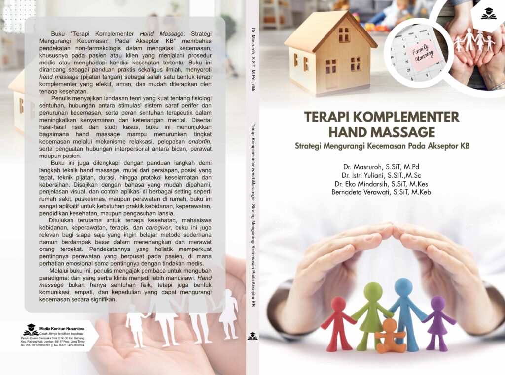 Isi buku mencakup panduan praktis teknik hand massage, durasi ideal, frekuensi pelaksanaan, serta langkah-langkah higienis yang harus diperhatikan. Buku ini juga menyajikan panduan bagi tenaga kesehatan dalam memberikan terapi ini secara efektif, sekaligus pendekatan komunikasi yang empatik kepada akseptor KB.